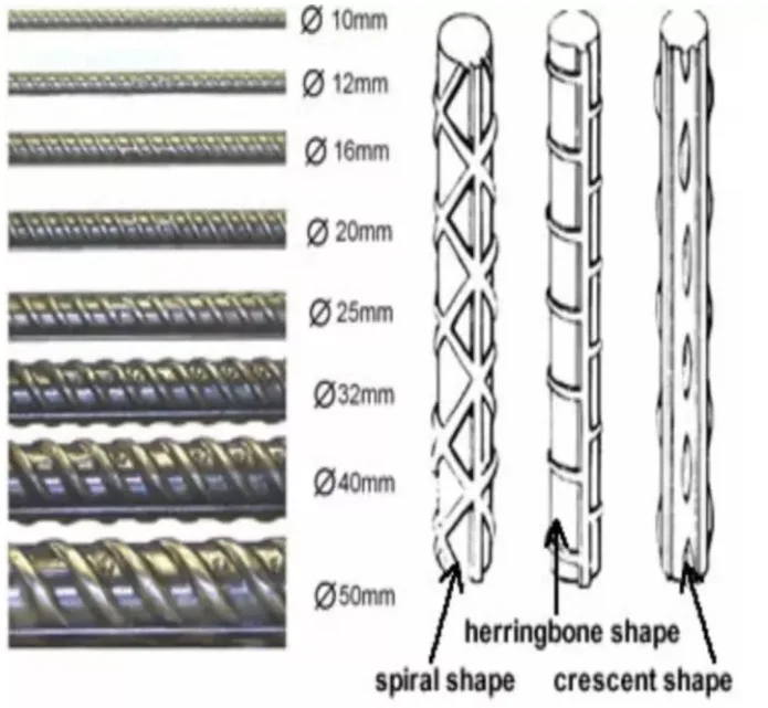 Rebar is a steel bar with ribbed surface, also known as ribbed reinforcement, usually with 2 longitudinal ribs and a transverse rib evenly distributed along the length direction.The shape of transverse rib is spiral shape,herringbone shape and crescent shape. In terms of millimeters of nominal diameter.The nominal diameter of ribbed reinforcement is equal to the nominal diameter of the light-round reinforcement with the same cross-section.The nominal diameter of the steel bar is 8-50 mm, and the recommended diameter is 8, 12, 16, 20, 25, 32 و 40 mm.Ribbed bars mainly bear tensile stress in concrete.The ribbed steel bar can bear the action of external force better because of the effect of ribbed and concrete.Ribbed bars are widely used in various building structures, especially large, heavy, light thin-walled and tall buildings.
